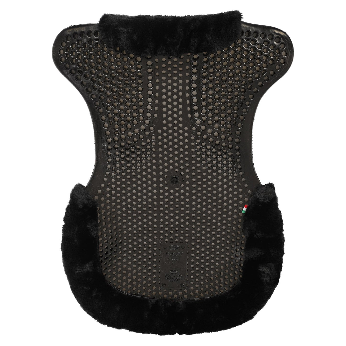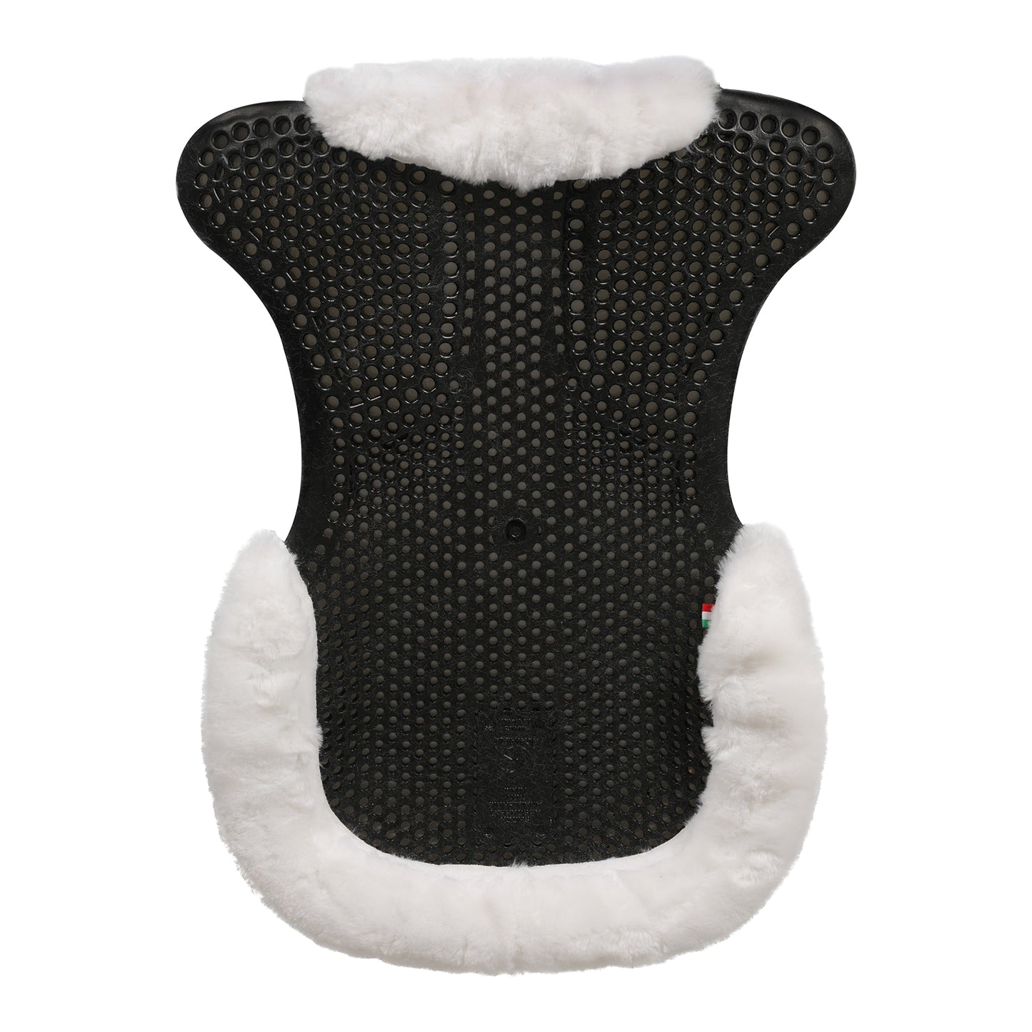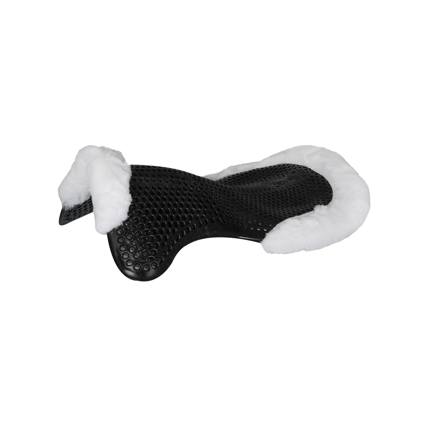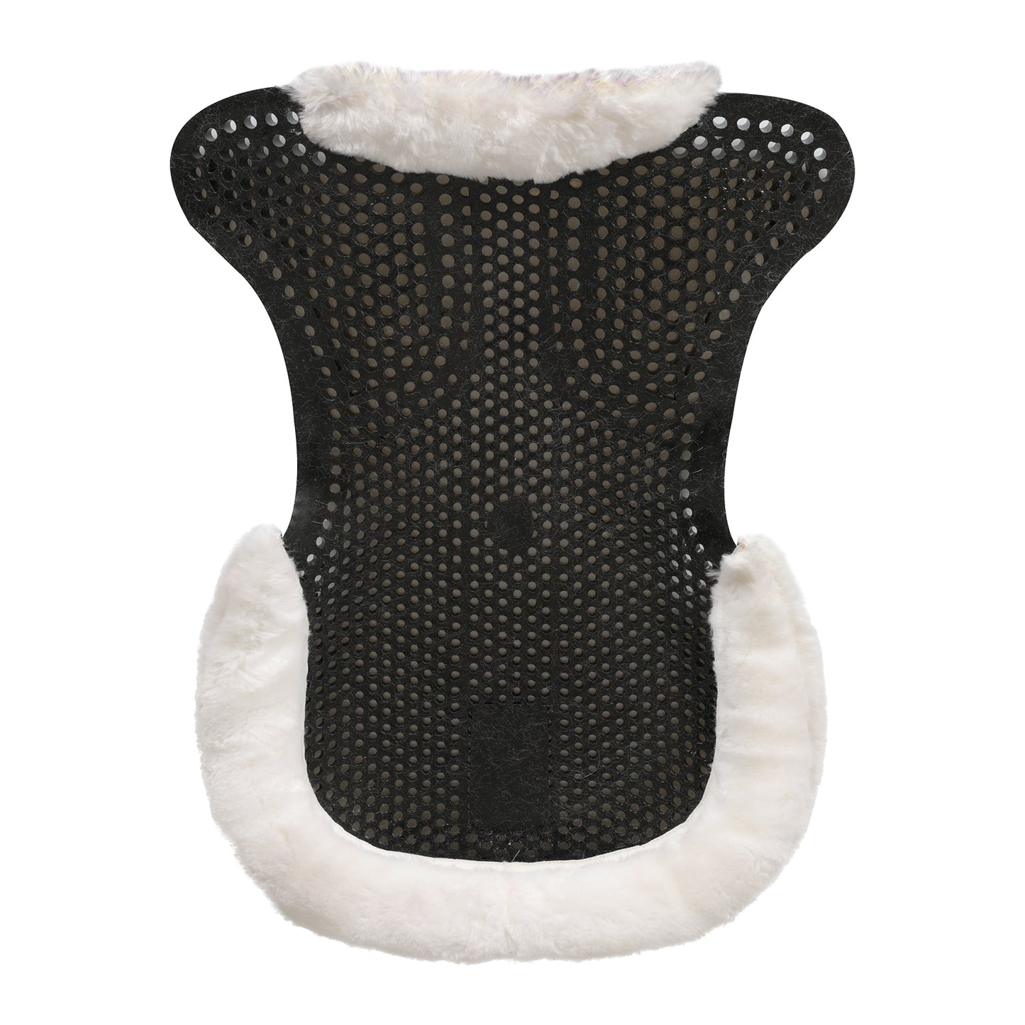 The Acavallo® cut-out synthetic sheepskin non-slip gel with Classic design and front riser offers maximum comfort and support for saddle and horse.