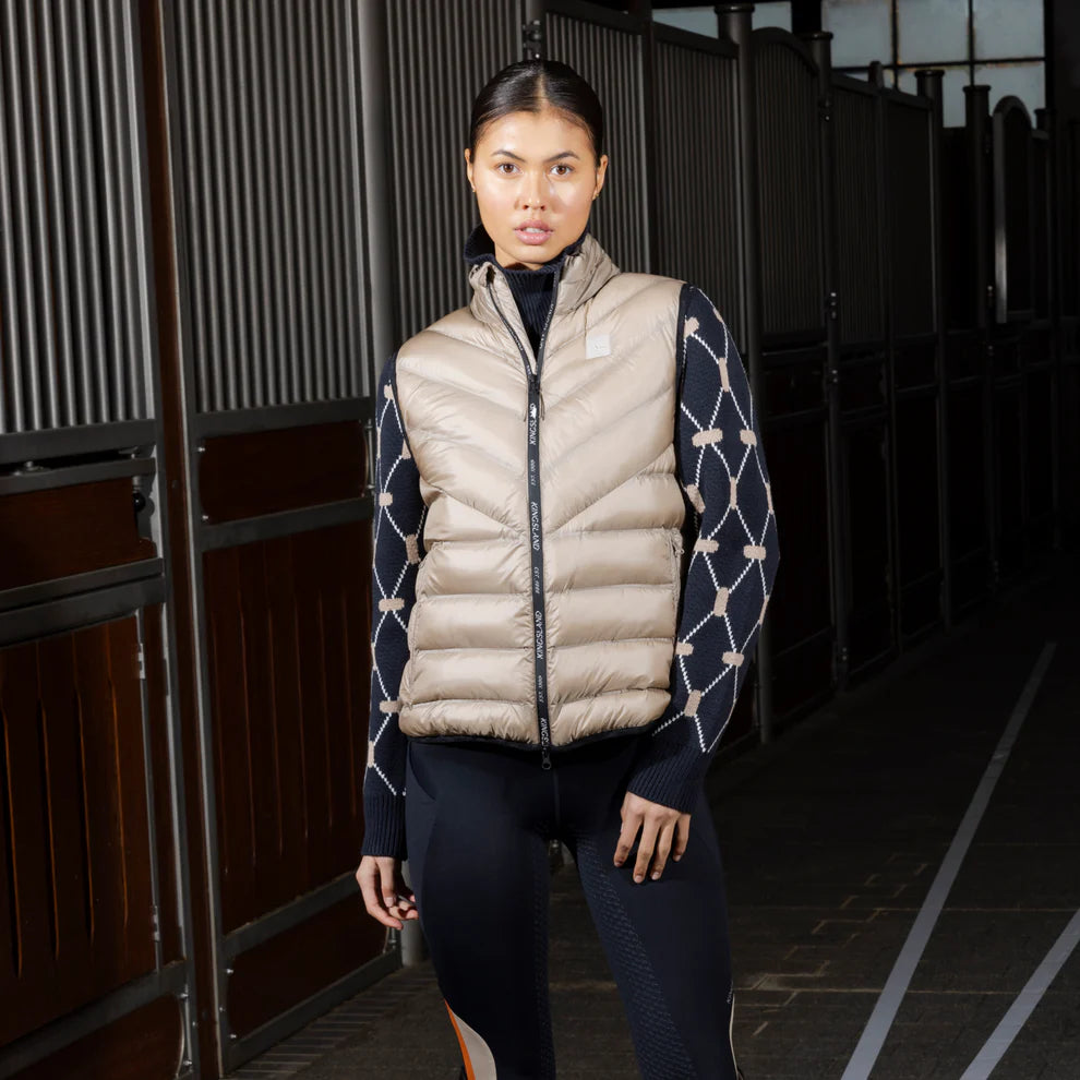 Our lightweight unisex padded vest offers a practical outer layer that keeps your core warm and your arms flexible. It is water-repellent and windproof, offering extra protection from the elements, while the double layer fabric retains heat, keeping riders comfortable whether on horseback, in the stables or on the go. This vest includes a convenient bag for easy and compact storage, providing additional protection from dirt or horse hair, making it a hassle-free garment to take on the go.