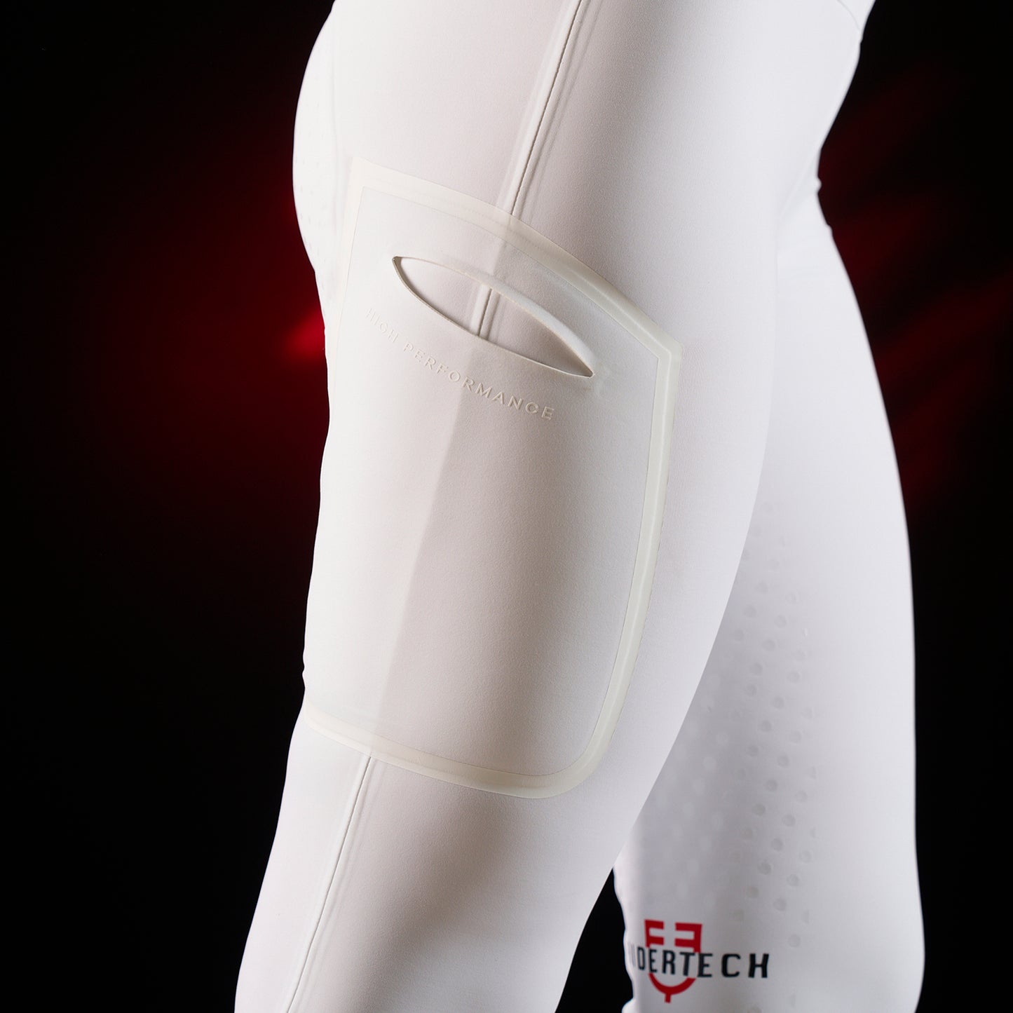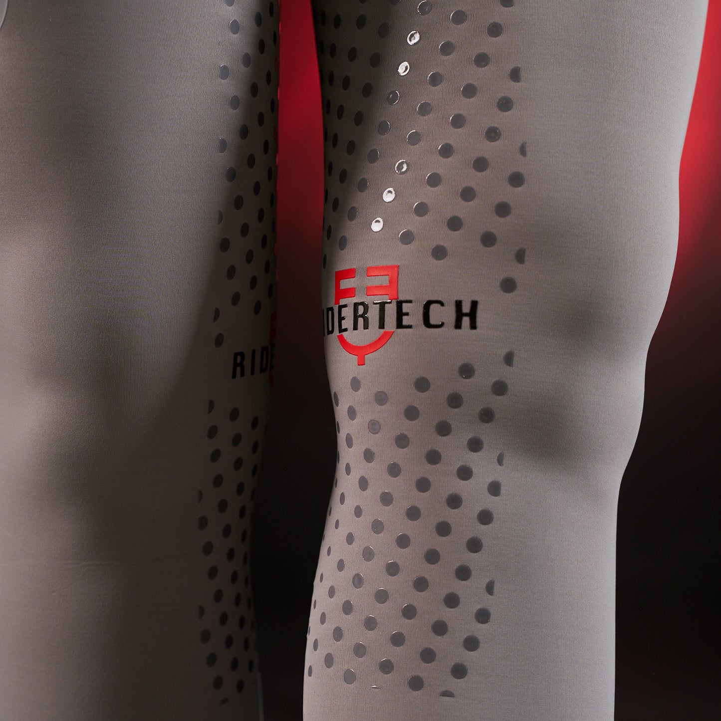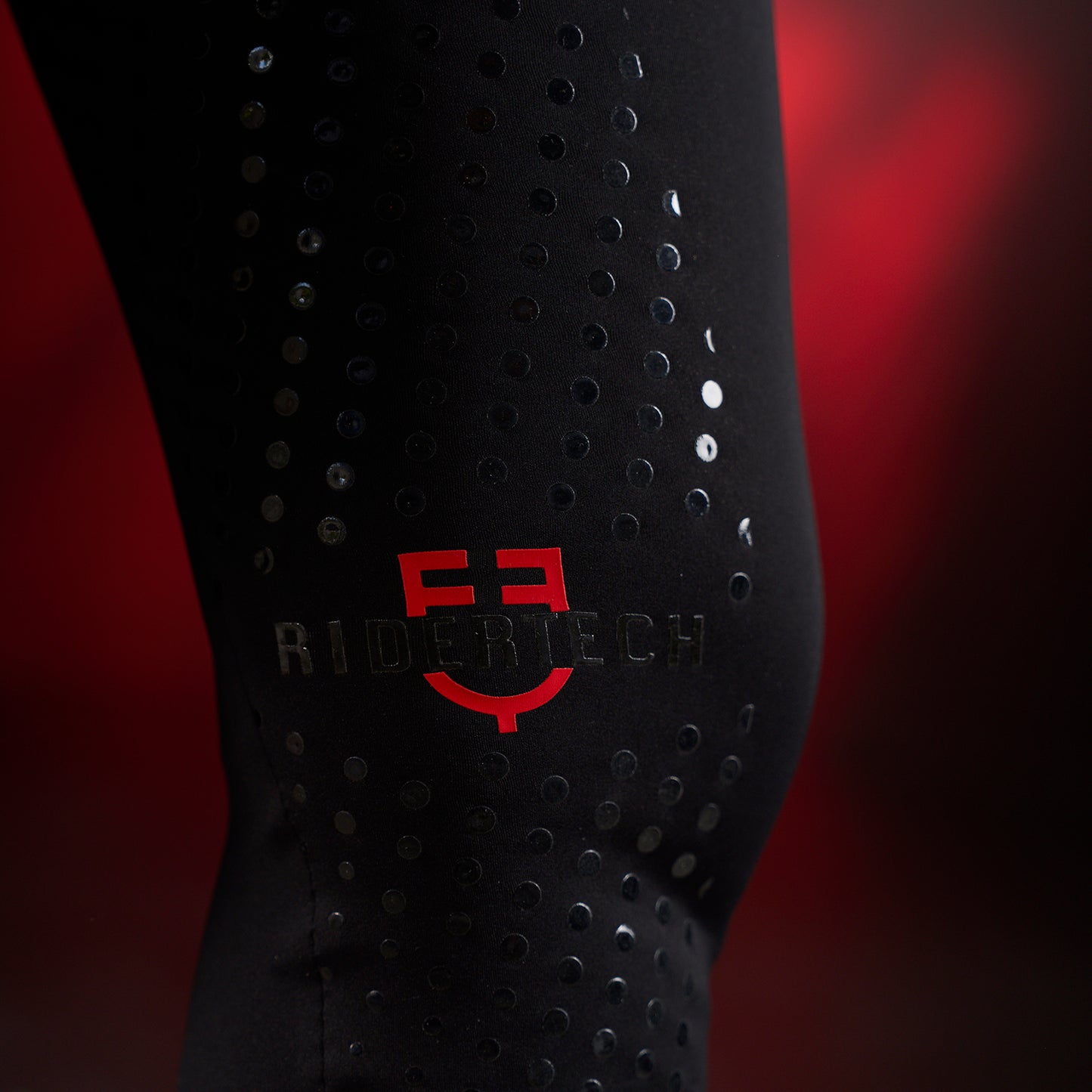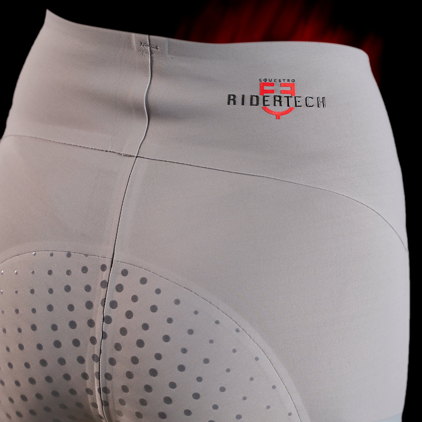 The brand identity is emphasized by the presence of the Equestro logo and the Equestro Ridertechnology writing, positioned both on the back of the elastic waistband and on the inside of the knee.