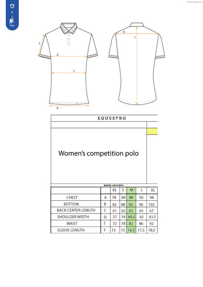 Equestro X FISE women's slim fit competition polo shirt in breathable and stretch technical fabric, perfect for protecting yourself from UV rays during sunny summer days.
