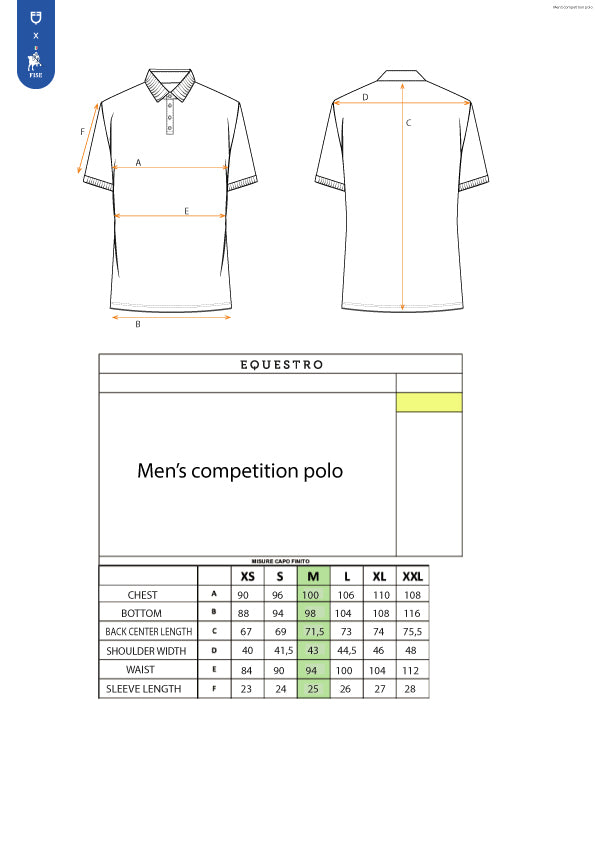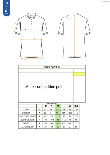Equestro X FISE men's slim fit competition polo shirt in breathable technical fabric . Perfect for competitions and for the rider looking for simplicity and refinement.