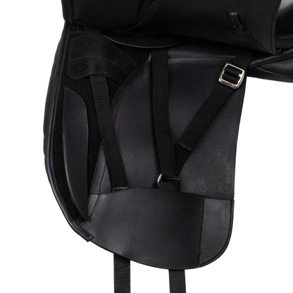- Single-flap Equestro dressage saddle made after careful research of top quality materials, typical of the Made in Italy style.