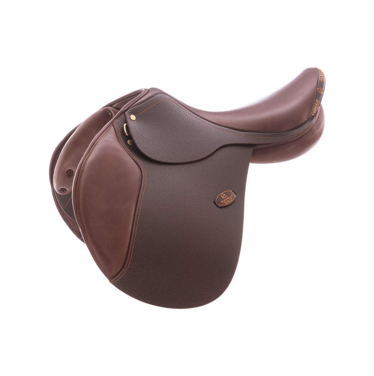 The Veneziano jumping saddle with wool pads is made of hammered full grain calf leather. .