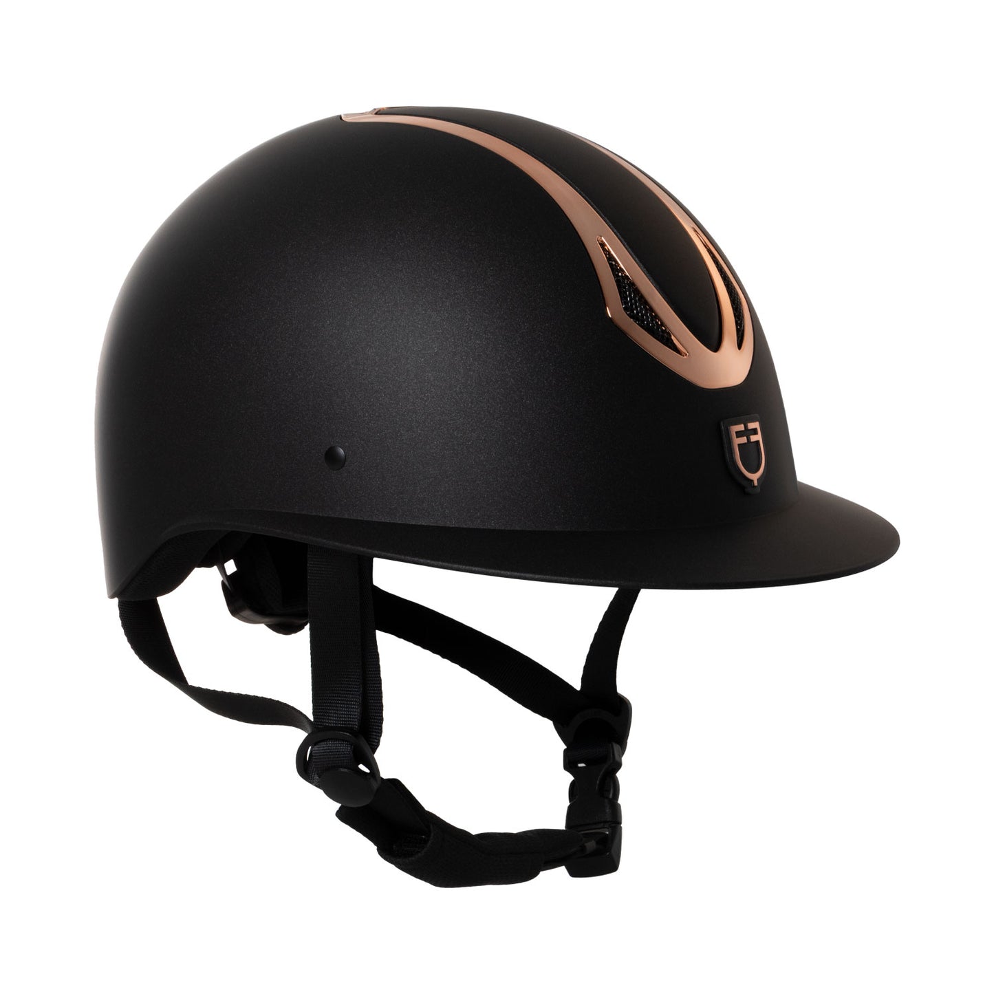 La presencia de la placa del logotipo en tono sobre tono con la montura hace que el casco sea elegante y refinado, en pleno estilo ecuestre.