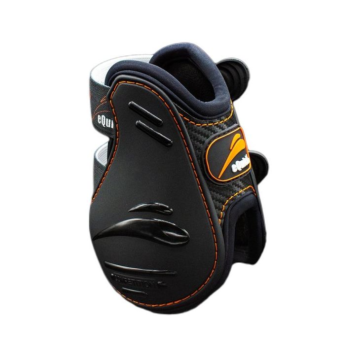 Las botas de menudillo eWonder de eQuick cuentan con una construcción de doble carcasa especialmente diseñada que protege la pata del caballo de los impactos y golpes durante el salto y sostiene al caballo.