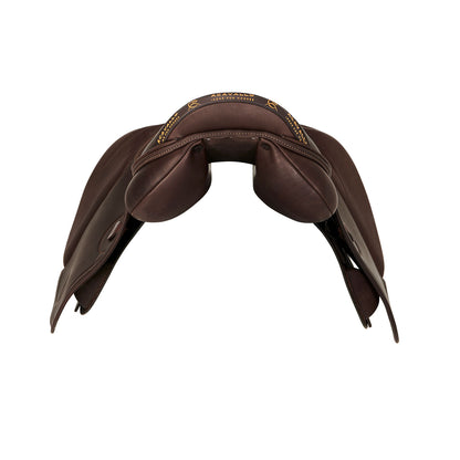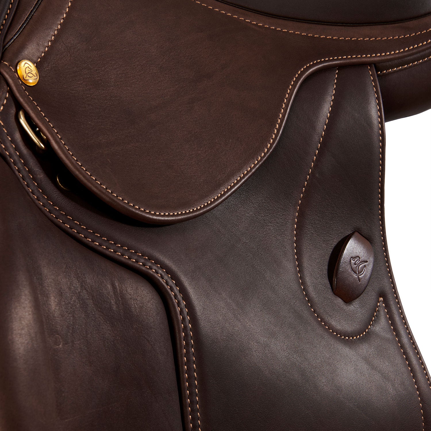 Los cojines acolchados de lana, diseñados para una larga duración, ayudan a absorber los impactos y hacen que el asiento sea especialmente cómodo tanto para el jinete como para el caballo. La solapa, reforzada en la zona de la pantorrilla con cuero martillado, está diseñada para resistir el desgaste y el paso del tiempo.