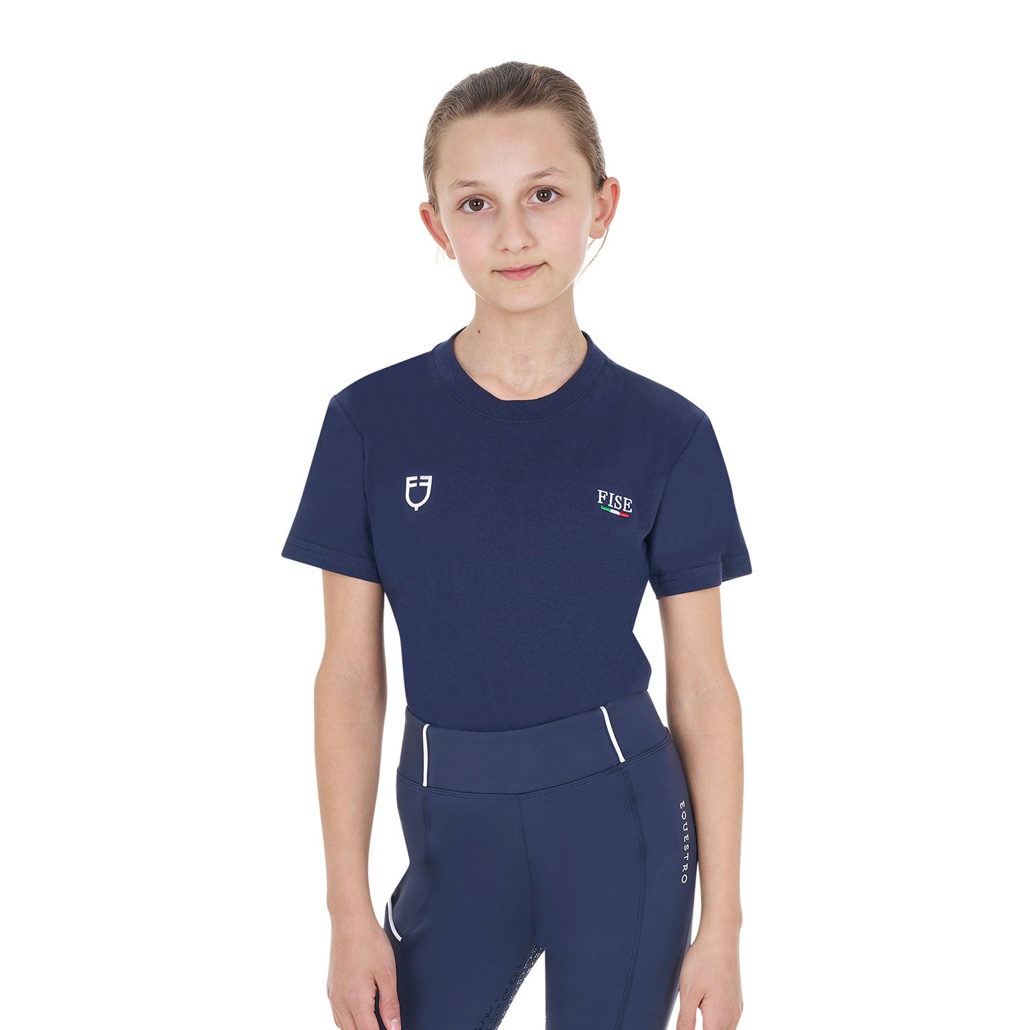 Camiseta infantil Equestro X FISE de corte entallado en algodón suave con mangas súper cortas realizando . Prenda práctica y fresca que facilita la evaporación del sudor y garantiza un excelente ajuste y libertad de movimientos.