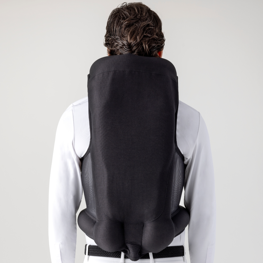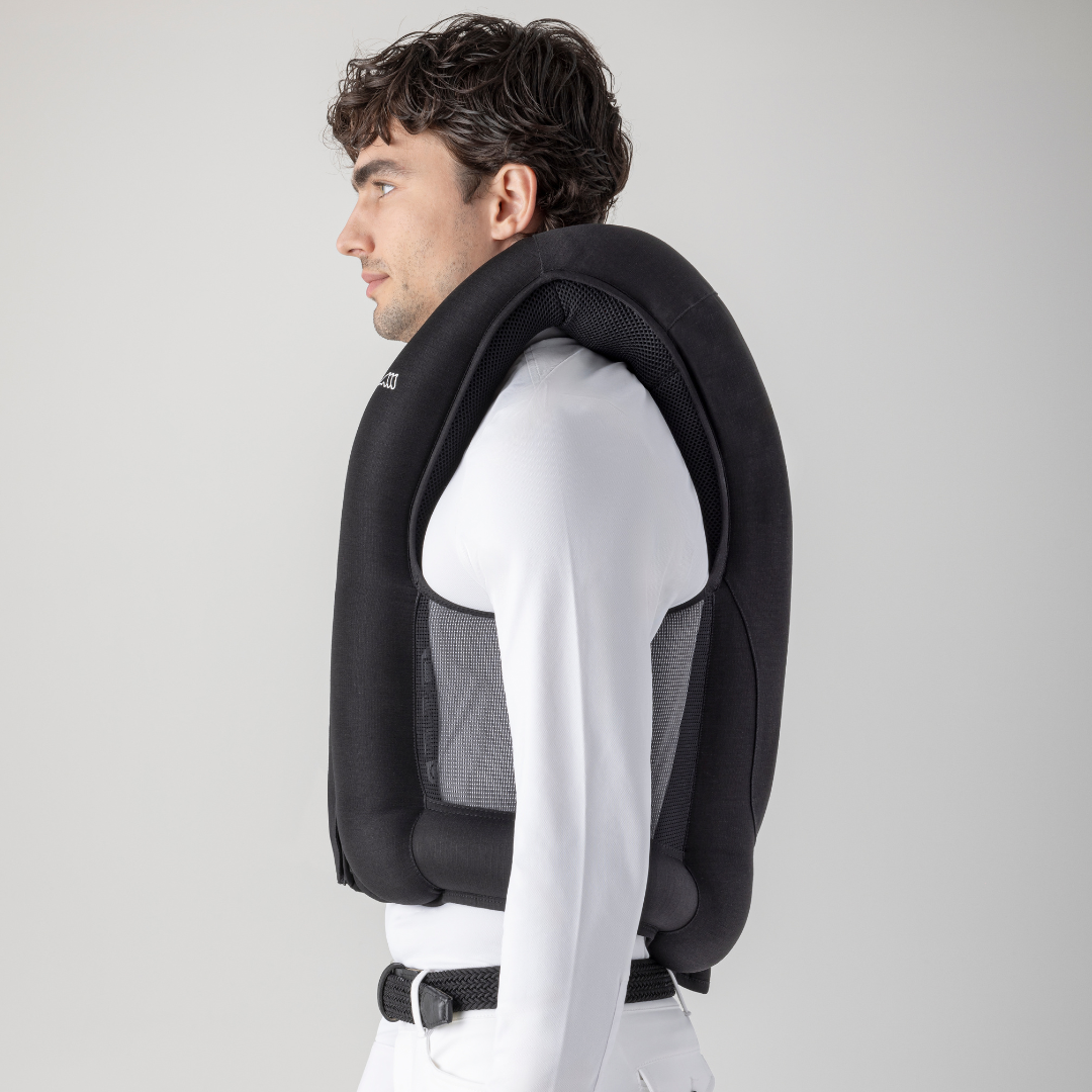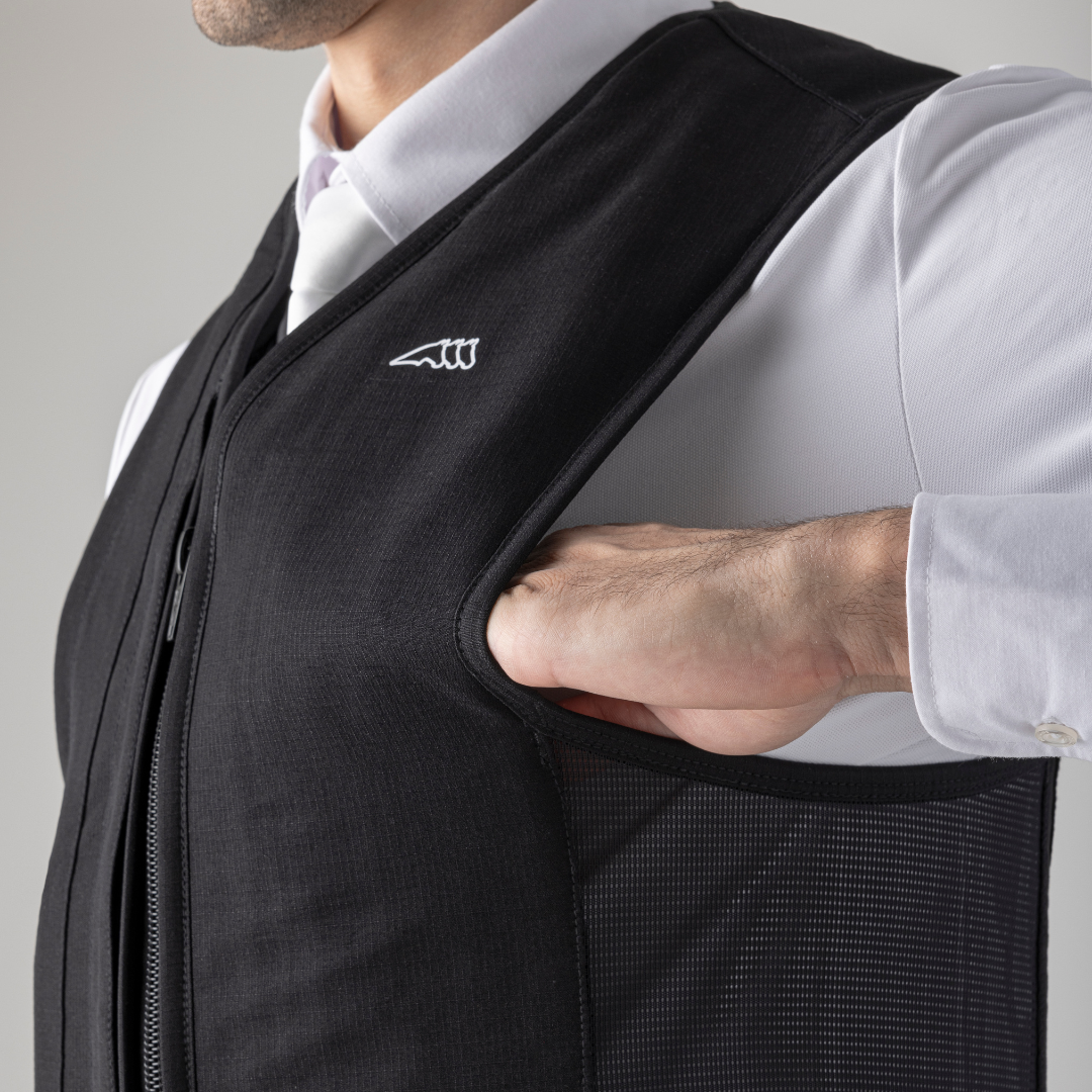 - Gilet airbag ergonomico che può essere indossato sotto tutti i tipi di giacche da competizione.