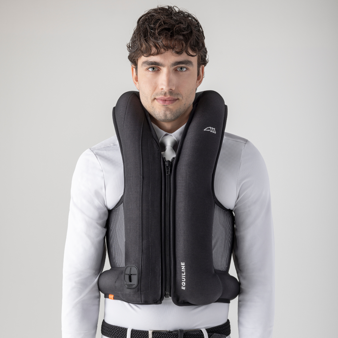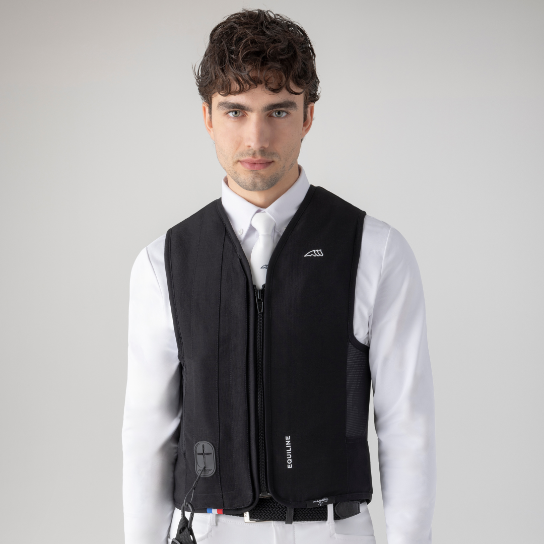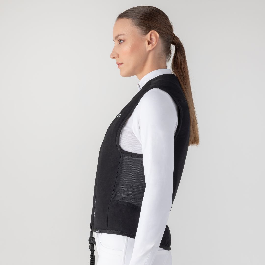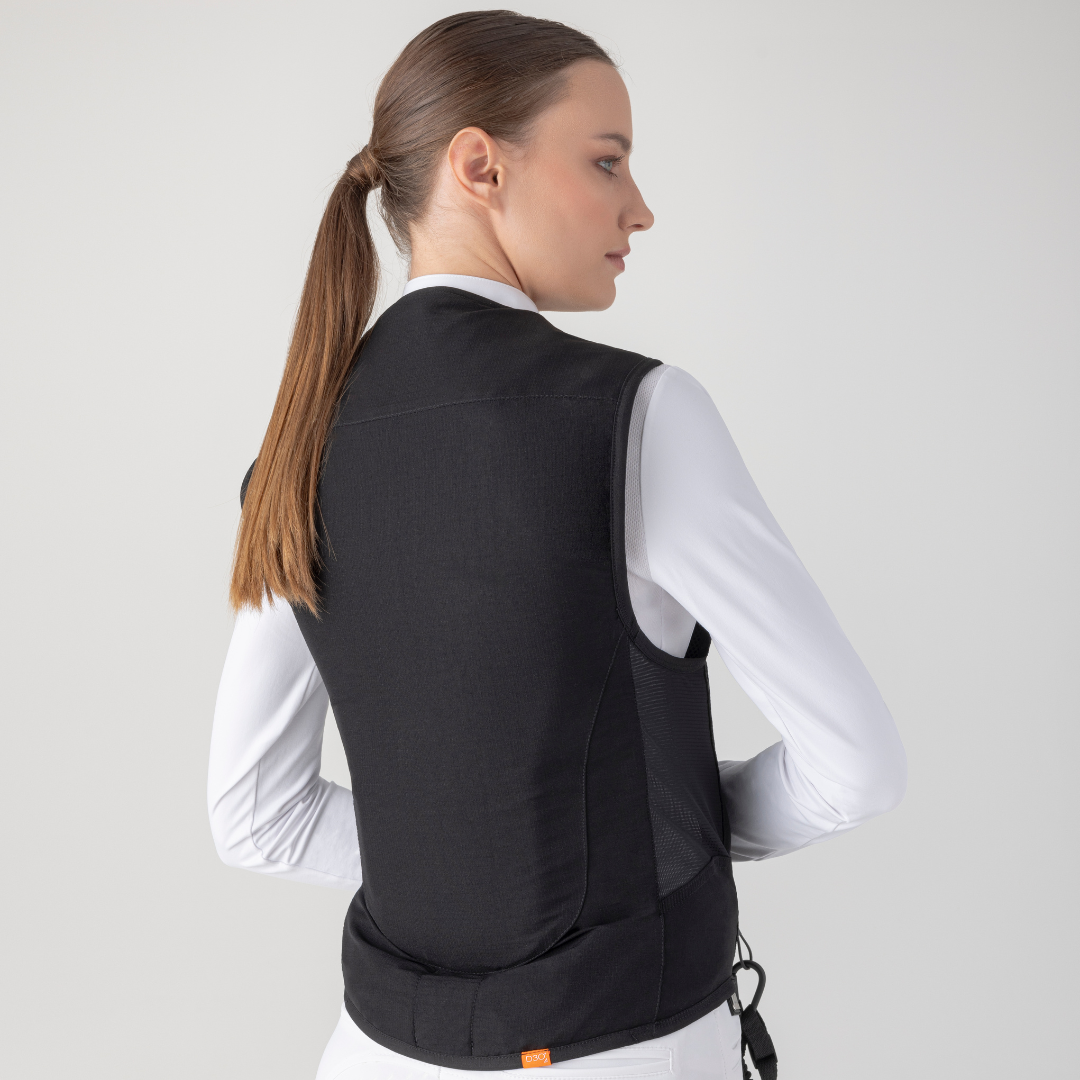 - Gilet airbag ergonomico che può essere indossato sotto tutti i tipi di giacche da competizione.