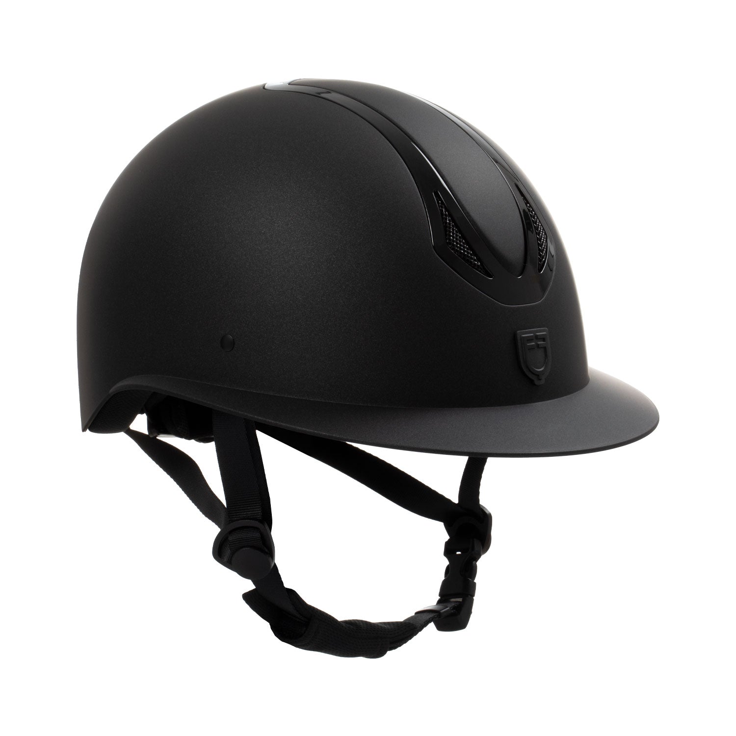 La presenza della targhetta con Logo tono su tono con il frame, rende il casco elegante e raffinato, in pieno stile Equestro.