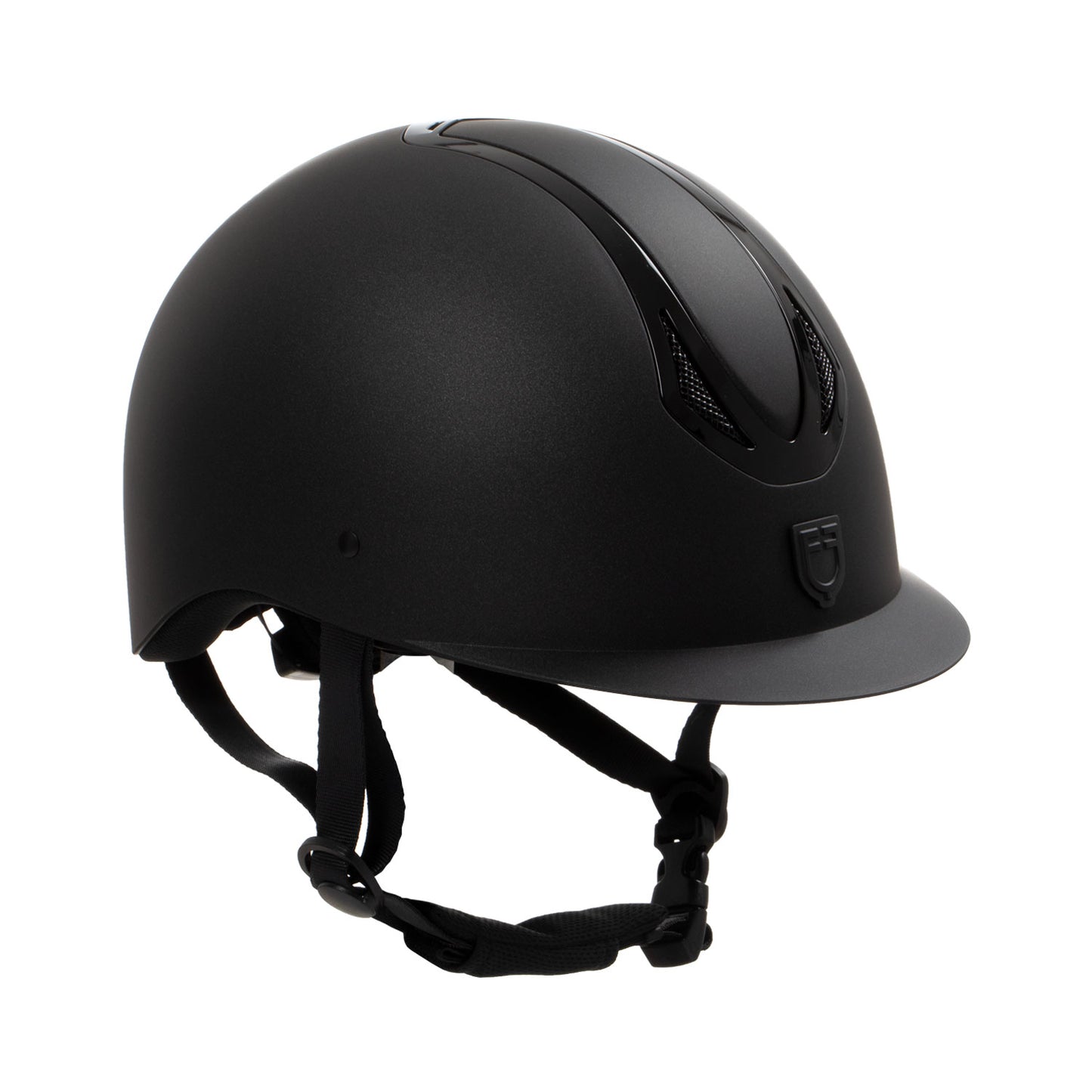La presenza della targhetta con Logo tono su tono con il frame, rende il casco elegante e raffinato, in pieno stile Equestro.