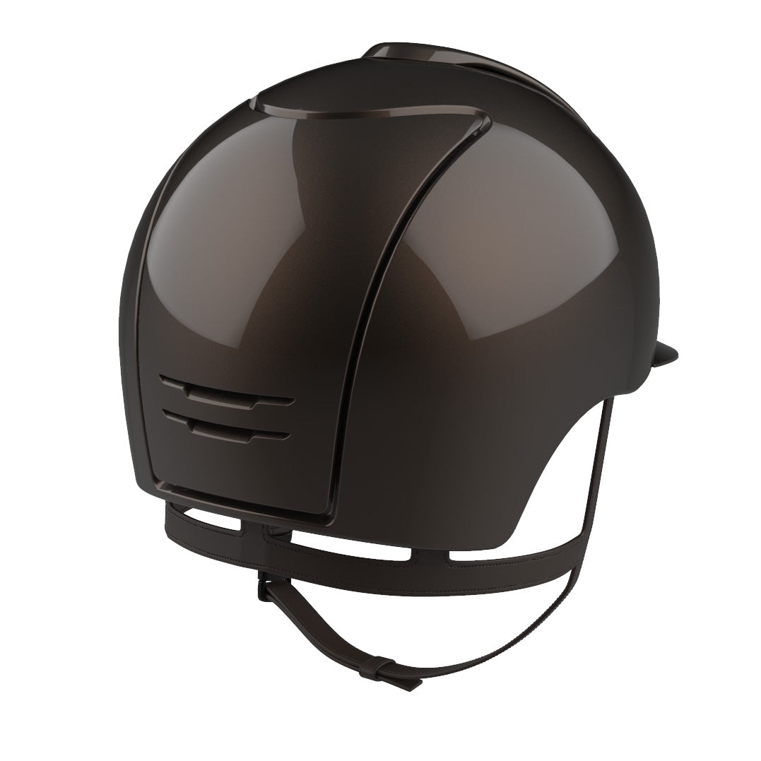Studiato e realizzato 100% Made in Italy. Il modello CROMO 2.0 è l'evoluzione del casco Cromo. Anch'esso disponibile in diverse finiture e varianti colore, CROMO 2.0 permette al cavaliere di accedere ad ulteriori possibilità di personalizzazione in autonomia, anche dopo l'acquisto. Sia i tasselli frontale e posteriore che la visiera possono essere sostituiti dal cavaliere attraverso semplici passaggi, grazie ad un innovativo sistema meccanico ad incastro. La calotta esterna, realizzata in policarbonato con sistema in-moulding, coniuga leggerezza e resistenza. La griglia di aerazione, dal design aggressivo ed elegante, è disponibile sia con finiture a contrasto, che tono su tono. Il sistema KEP AIR CONTROL SYSTEM si arricchisce di ulteriori fessure di areazione sul retro, per garantire una maggiore traspirabilità ed il migliore controllo della temperatura interna. Il cinturino in vera pelle cucito artigianalmente a mano mantiene i cinque punti di attacco per una calzata più stabile. La nuova imbottitura, ancora più confortevole e traspirante, è realizzata in morbido tessuto proveniente da materie prime eco green. E' sempre removibile e lavabile a mano o in lavatrice a 30°. Puoi rendere unico il tuo casco personalizzandolo con preziose aerografie a mano libera o altre tecniche. CROMO 2.0 è dotato di un microchip integrato, posizionato sotto il tassello frontale, sul quale possono essere caricate le informazioni sanitarie del cavaliere, dopo avere scaricato la KEP App. In caso di necessità contribuirai a rendere più tempestivi gli interventi di primo soccorso. Insieme ad ogni casco viene fornita in dotazione anche la visiera modello jockey. Peso: 500 g taglia M - 535 g taglia L.