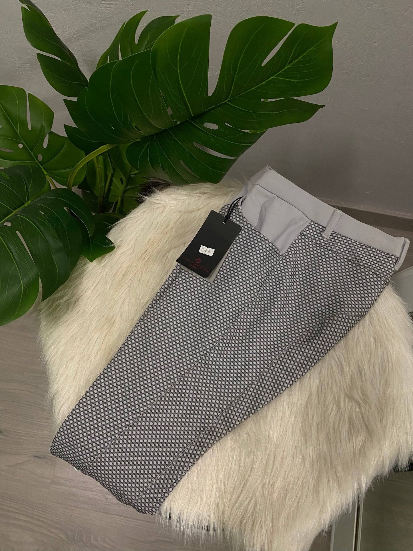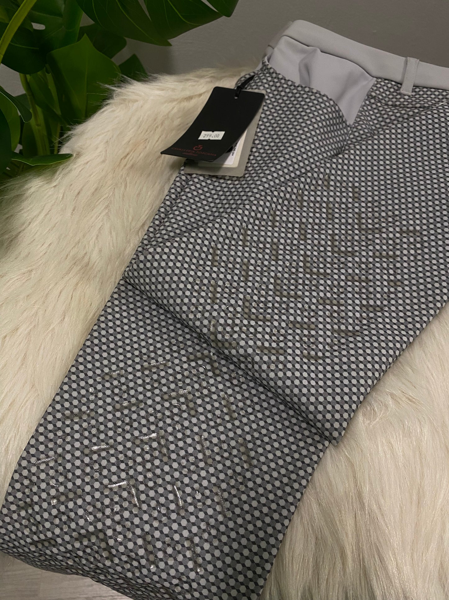 Pantaloni da donna collezione realizzati in tessuto tecnico, presenta una chiusura centrale con un bottone e una zip, ed e' decorato con un piccolo logo Cavalleria Toscana in contrasto sulla gamba destra.