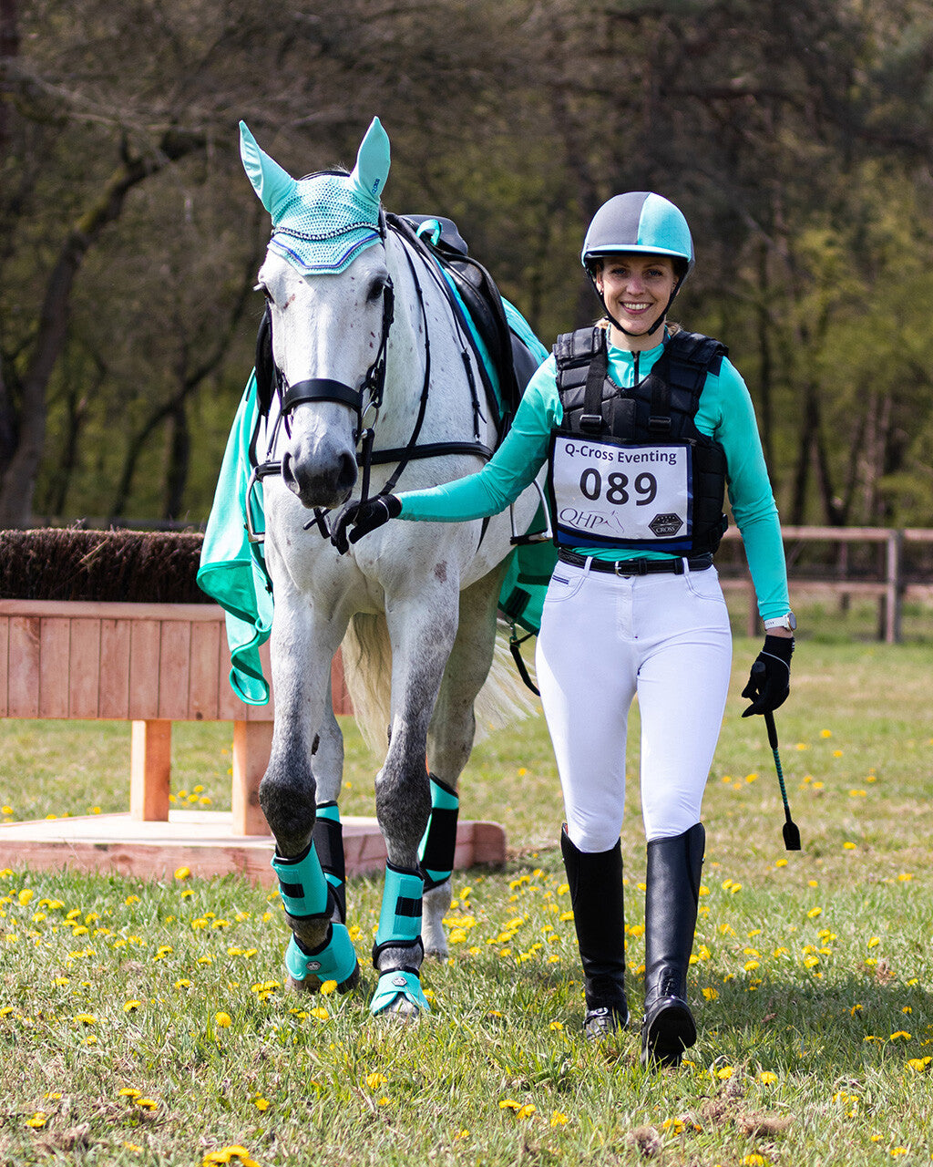 Pettorale portanumero con possibilità di inserire un cartellino portanumero sul davanti e sul retro. Le due cinghie sulle spalle sono regolabili tramite un cursore. Il pettorale portanumero può essere allacciato con un elastico in vita con chiusura in plastica sul fondo. Decorato con un distintivo Q-Cross sul retro.