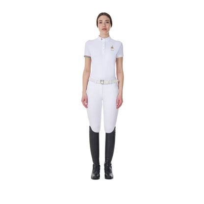 Polo donna slim fit da concorso Equestro X FISE in tessuto tecnico traspirante ed elasticizzato, perfetto per proteggersi dai raggi UV durante le giornate di sole estive.