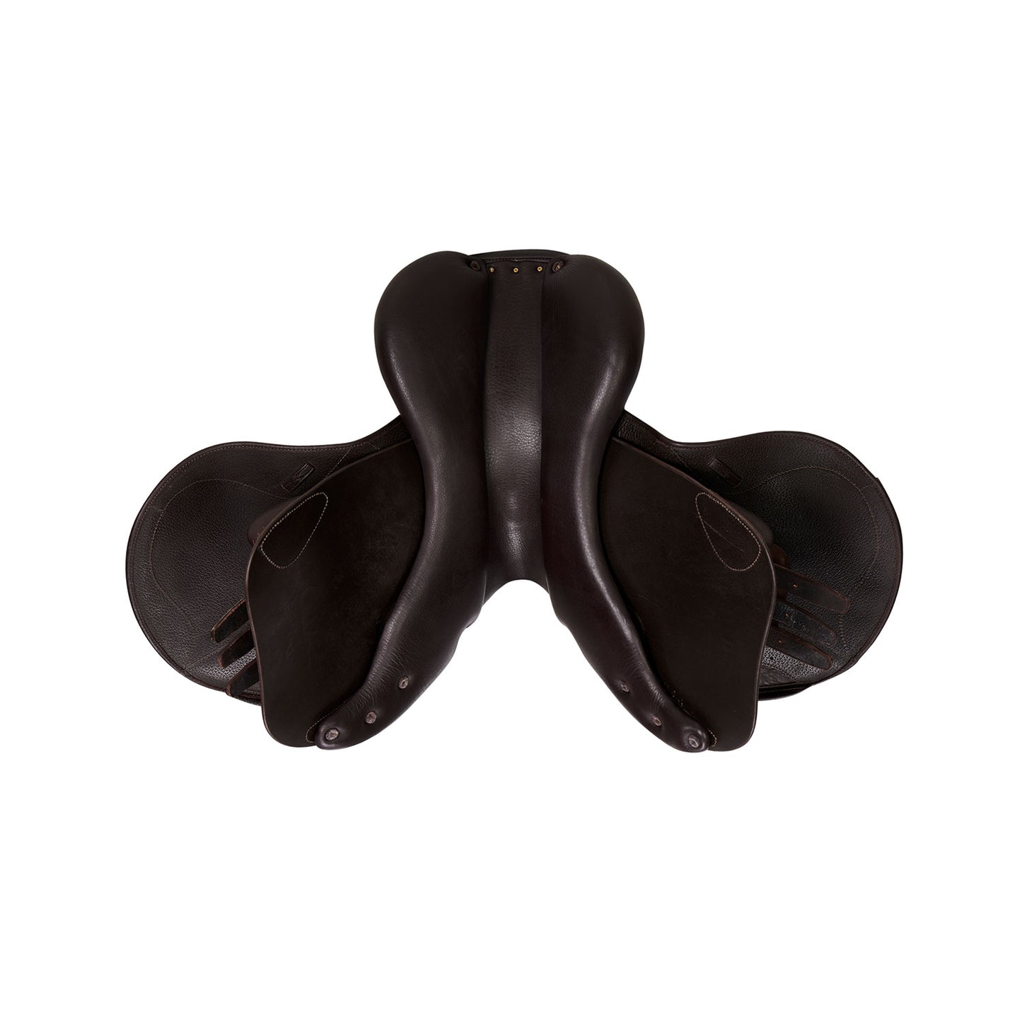 - Sella da salto in cuoio doppiato realizzata con l'idea di una sella leggera, ma soprattutto elegante e confortevole sia per cavallo che per cavaliere.