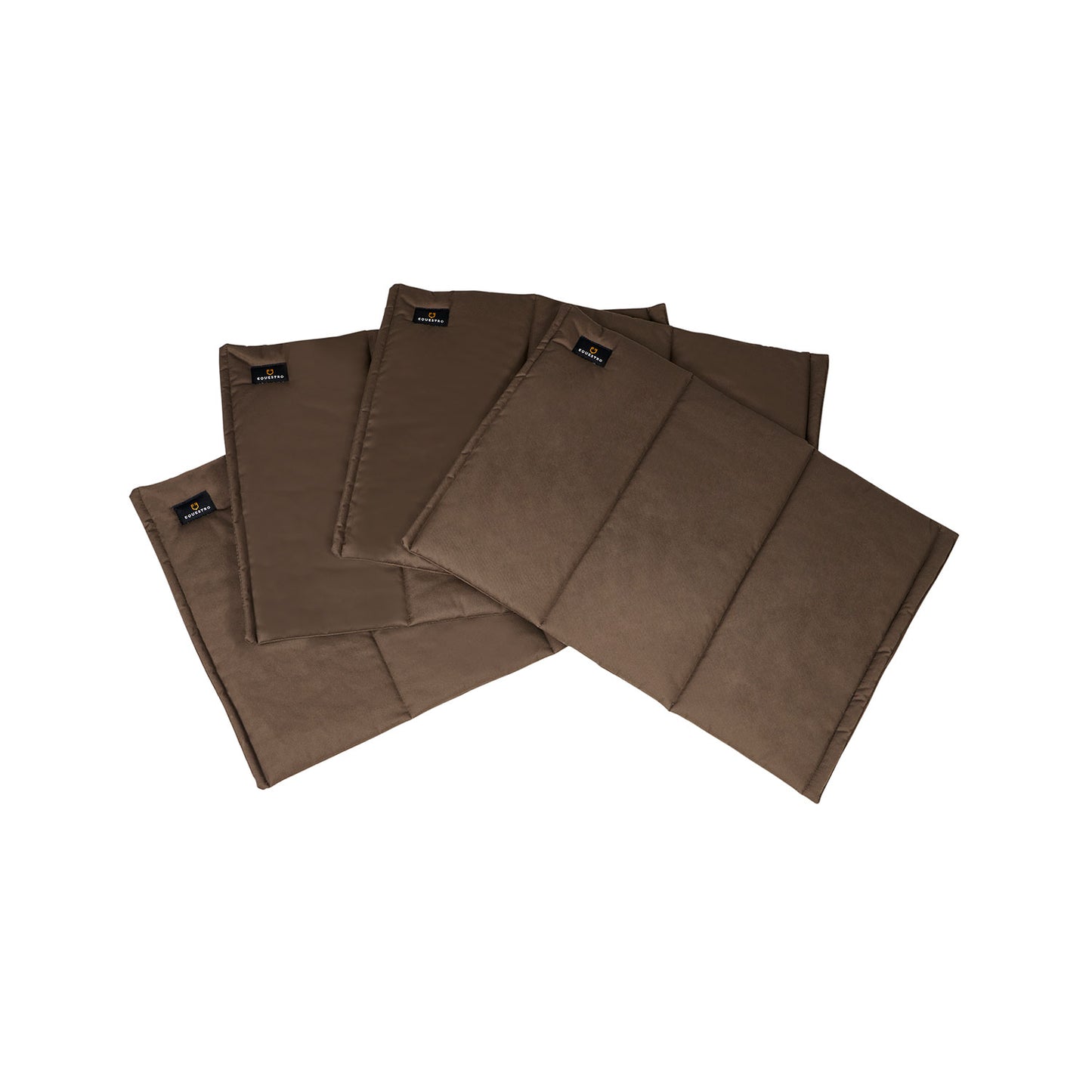 Set composto da 4 sottofascia in cotone e imbottiti di ovatta. Perfetti per attutire i colpi durante il trasporto del cavallo e semplicemente per permettere un veloce ed efficace recupero del cavallo a seguito di un intenso allenamento.